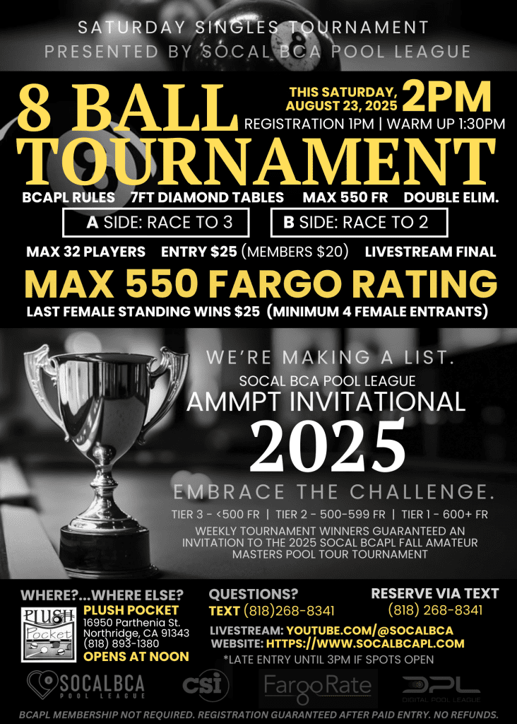 • Venue: Plush Pocket Billiards
