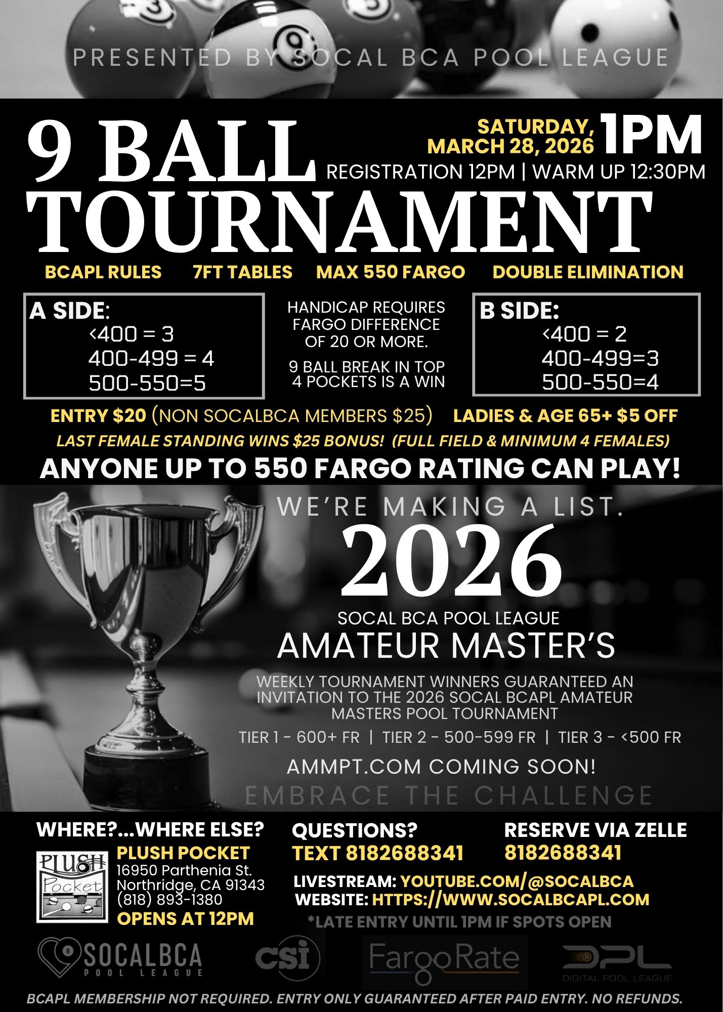 • Venue: Plush Pocket Billiards