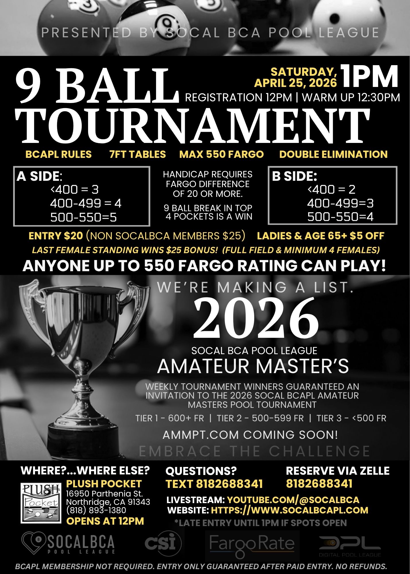 • Venue: Plush Pocket Billiards