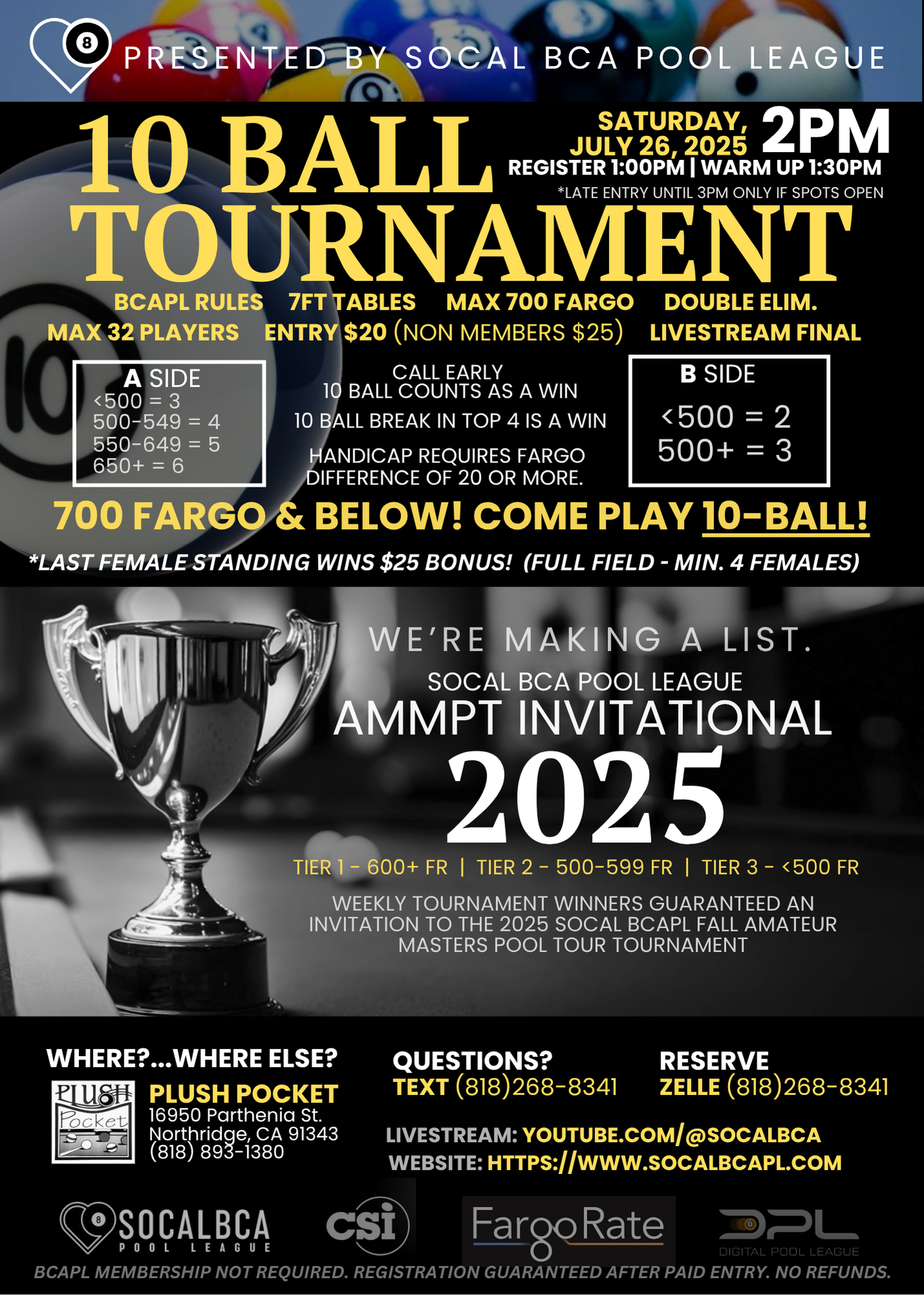 • Venue: Plush Pocket Billiards