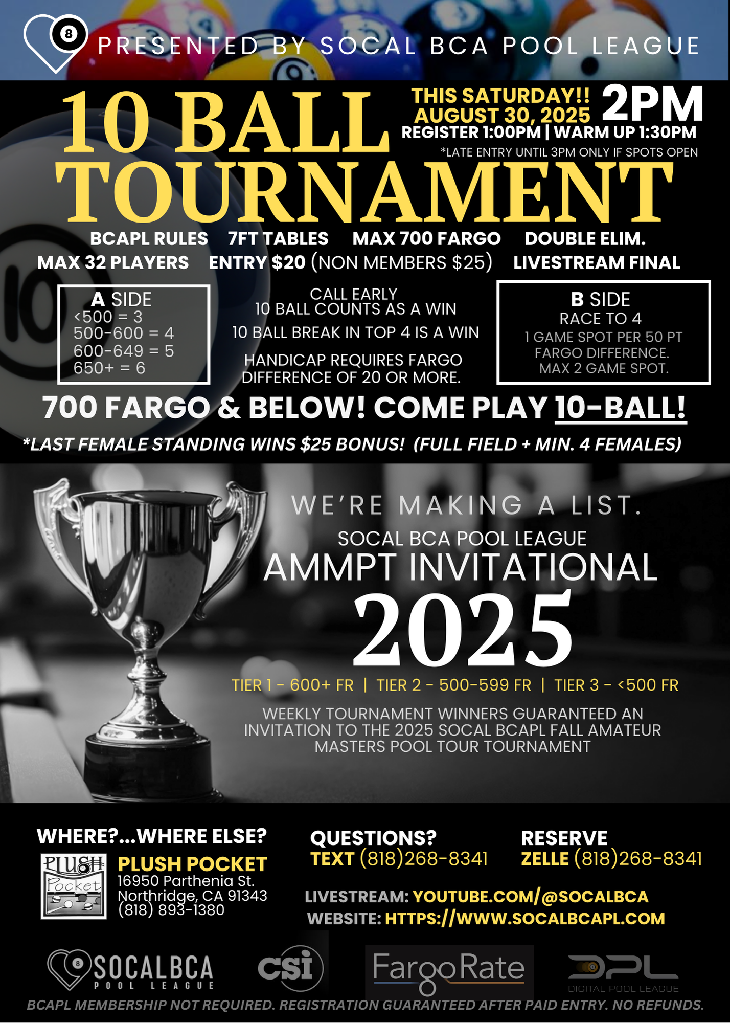 • Venue: Plush Pocket Billiards