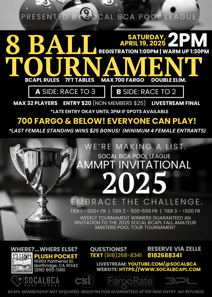 • Venue: Plush Pocket Billiards