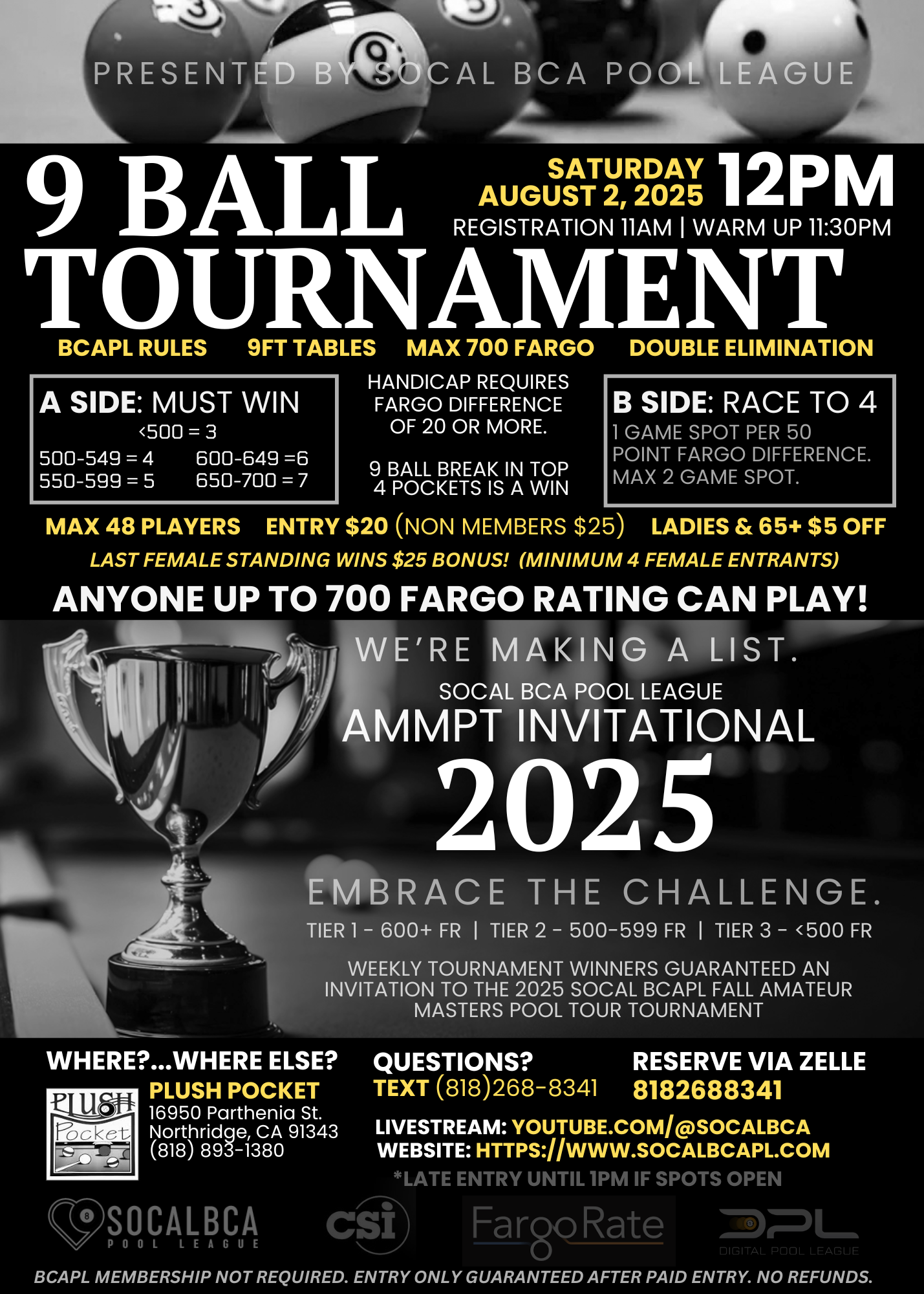 • Venue: Plush Pocket Billiards
