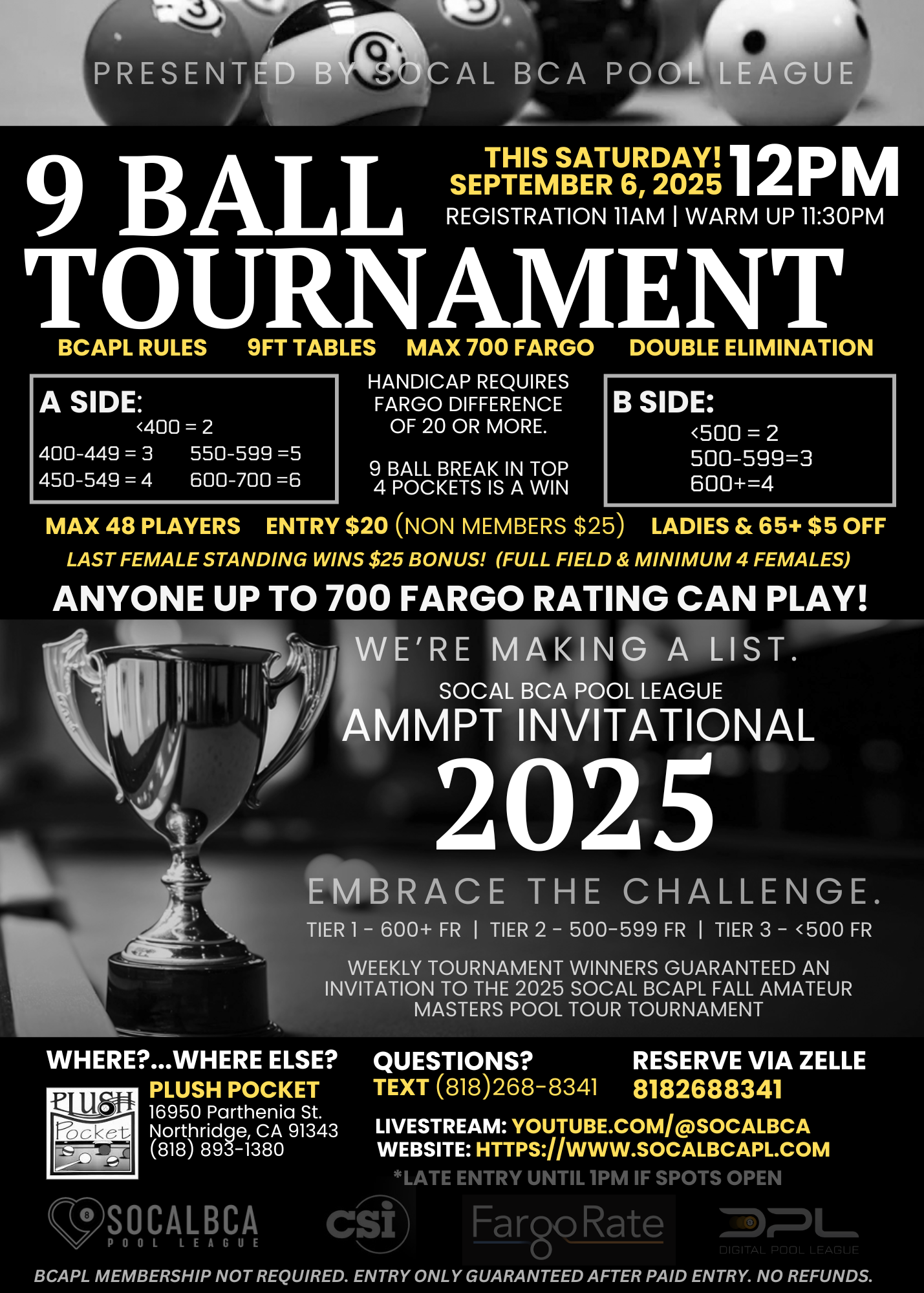• Venue: Plush Pocket Billiards