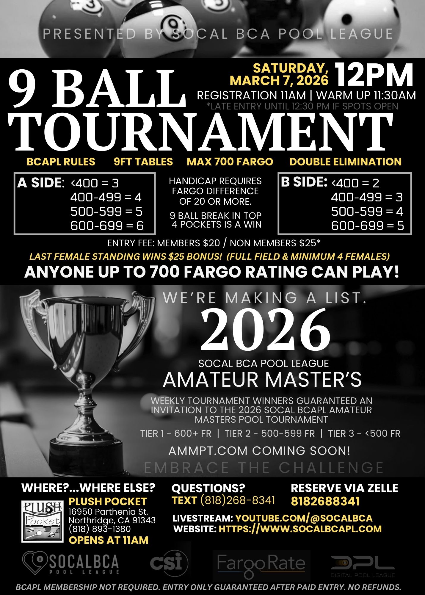 Next Tournament: 3/7/2026 12PM – 9B/9FT/MAX 700 (H)